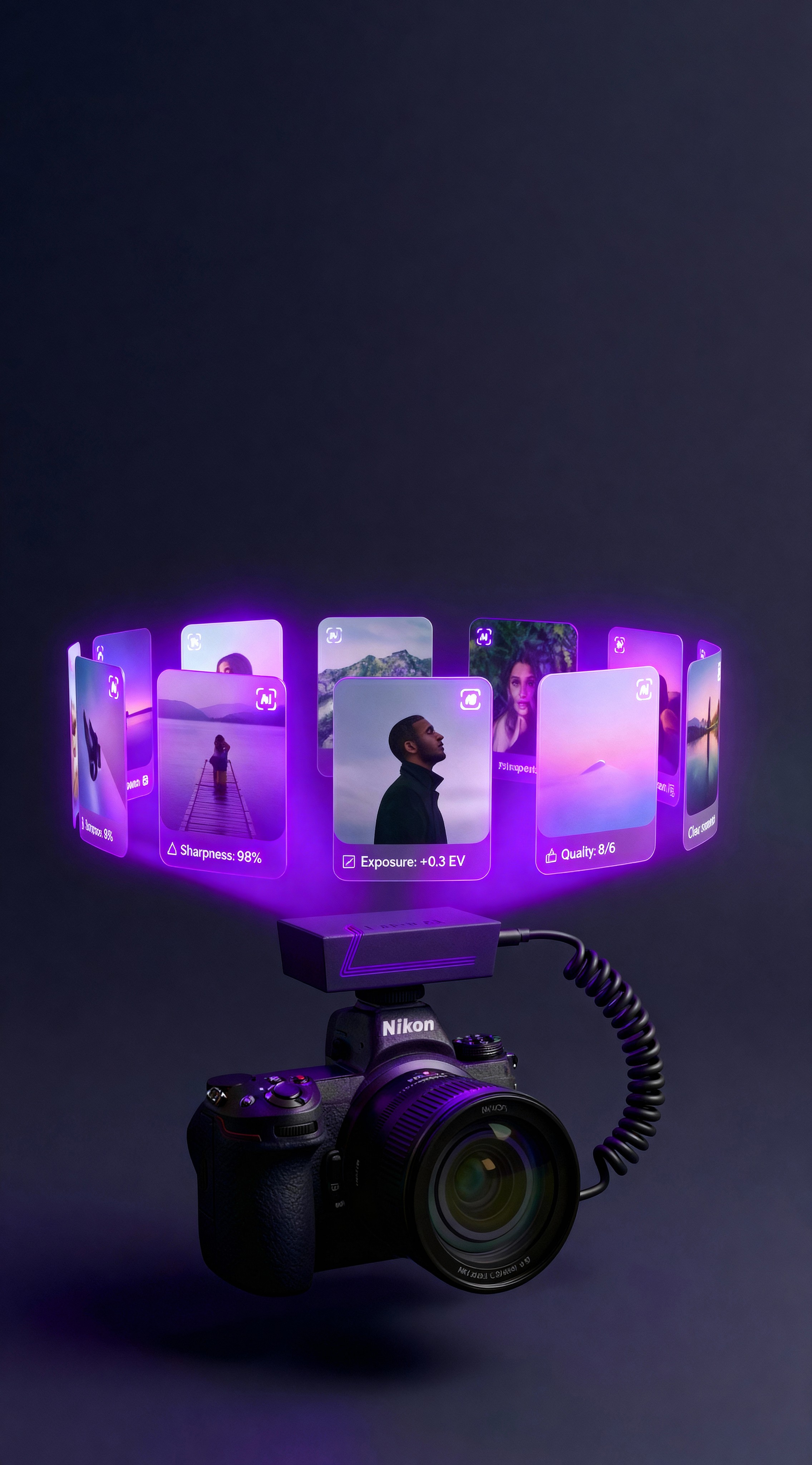 Your camera, instantly backed up and organized — the moment you press the shutter.